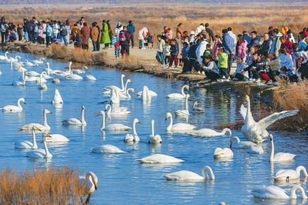 山西运城:天鹅翩跹迎客来