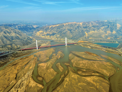 冬日里的黄河河津段,大桥、山峦与河床相映成景,共同勾勒出一幅秀美的生态画卷。近年来,河津市着力加强生态保护治理,促进黄河流域高质量发展,改善群众生活品质,让黄河成为造福人民的幸福河。(闫鑫摄)