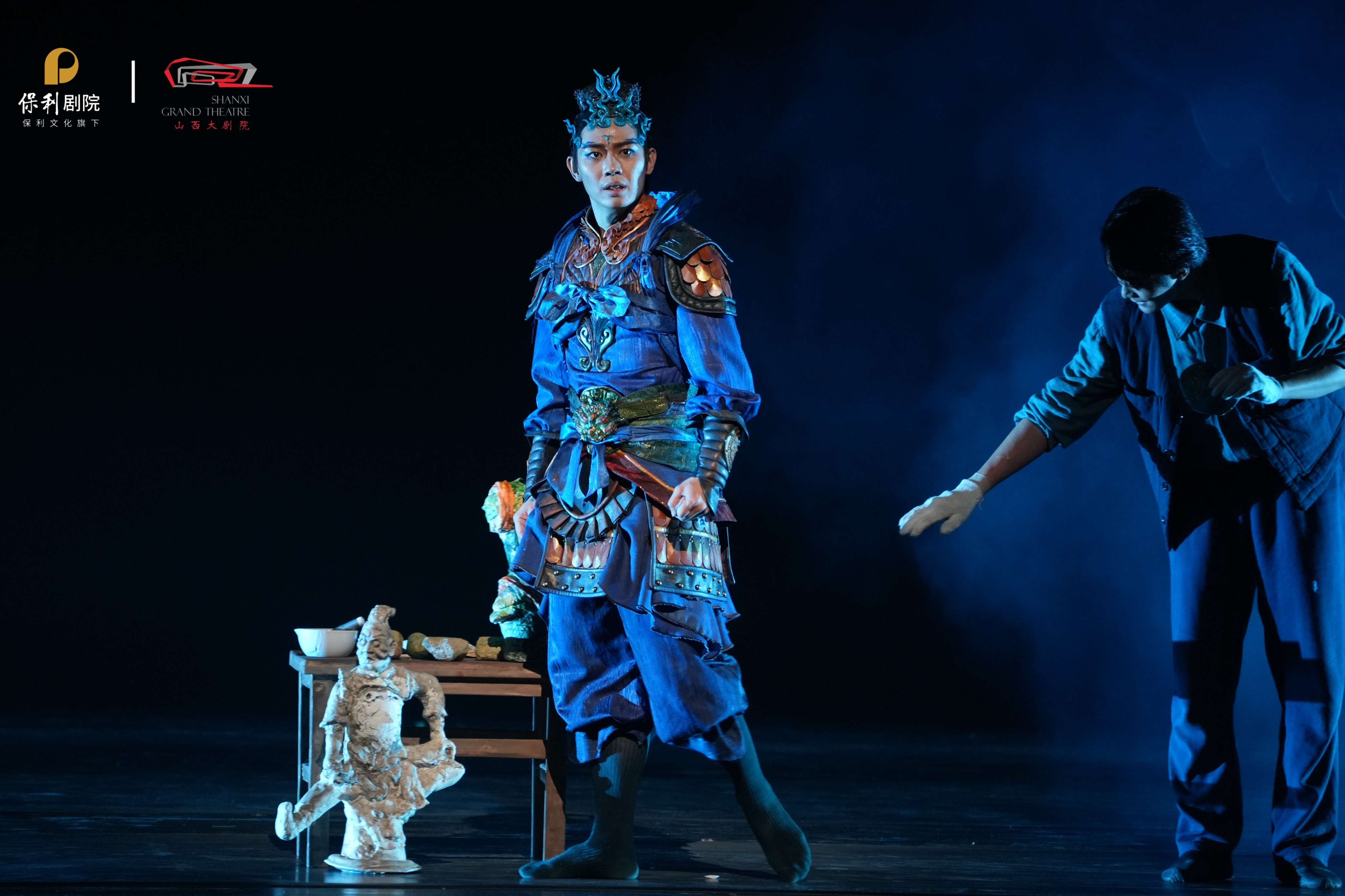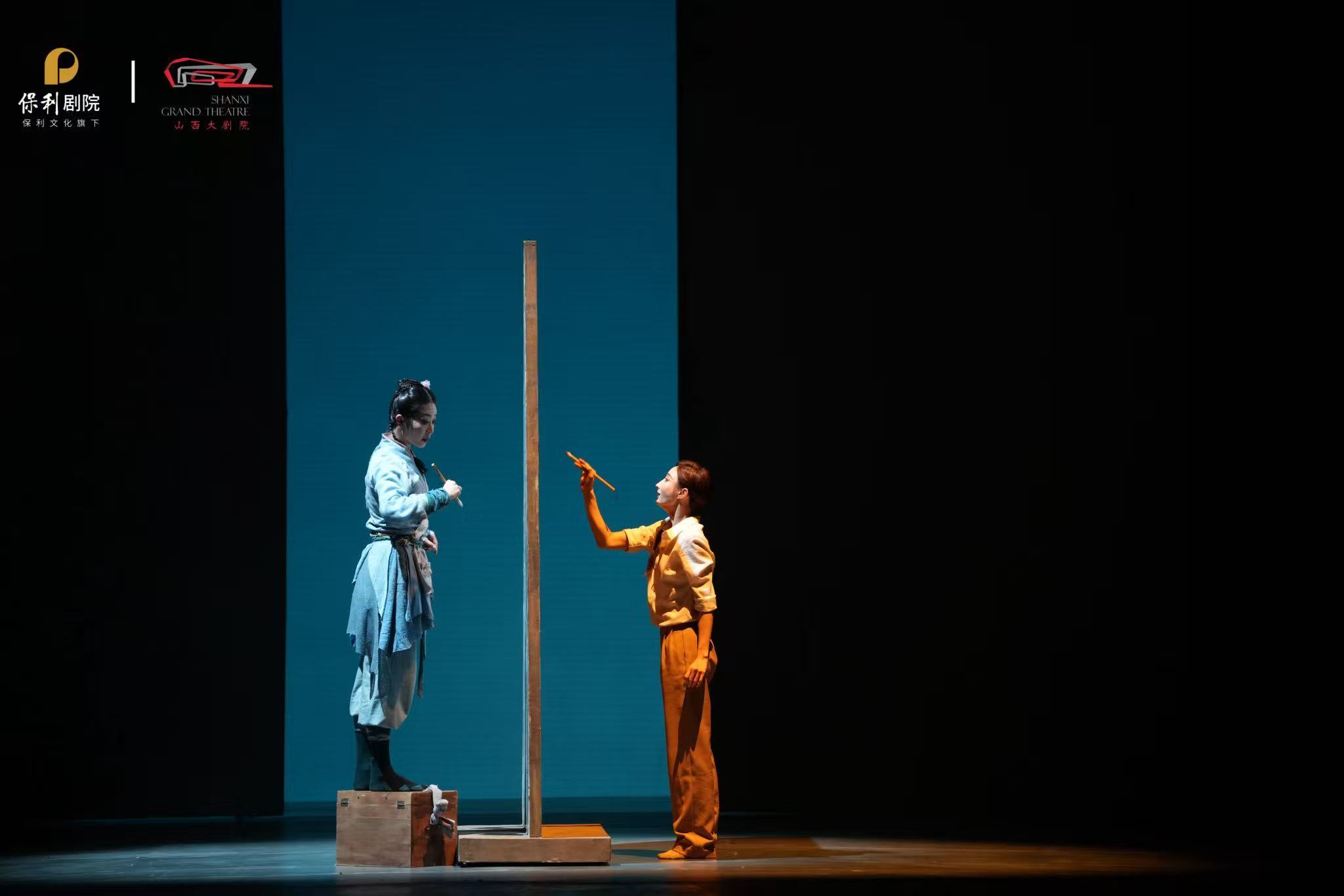 在“时空同频”的舞台语汇中,元代督建者与当代建筑师、被拒之门外的元代女画工与当代临摹者、执着复原孔雀蓝釉的匠人与七百岁的“蓝釉角神”跨越时空对话,将一部宏大的文明迁徙史,转化为关于抉择、热爱与坚守的动人生命故事。