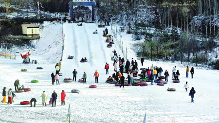1月5日,晋中市太谷区田园东谷温泉康养小镇首届冰雪节启动,游客们在园内尽情游玩,畅享冰雪世界的乐趣。(孙泰雁摄)