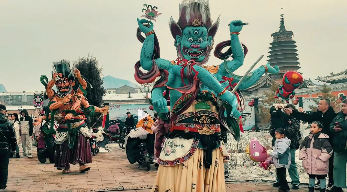 从震天的锣鼓到勇毅的背冰,从疾驰的跑马排到壁画上走下来的游神,再到指尖绽放的花馍……山西的年,是一场用身心沉浸式参与的文化盛宴。它“闹”得传统,“红”得深刻,“火”得热烈。