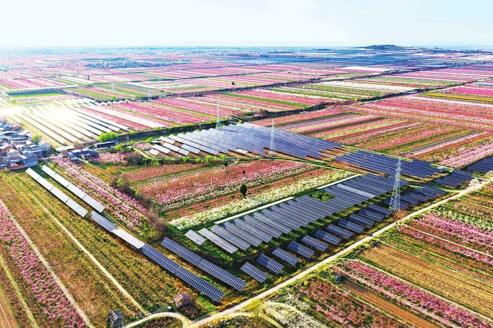 4月10日,运城市临猗县耽子镇霍村,光伏发电站与花田相映成景、壮美如画。近年来,该县积极推动绿色清洁能源发展,因地制宜探索“农光互补”新模式,实现光伏发电和农业种植的高效互补,为乡村振兴注入新动能。(茹雅摄)